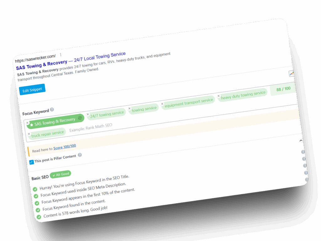 – Crafted to turn searches into real service calls through smart layout and towing-focused strategy.